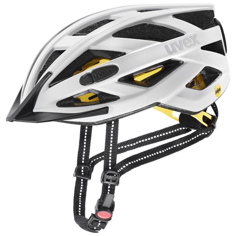 Lehká cyklistická přilba UVEX city i-ve MIPS s matnou povrchovou úpravou je určena pro jízdu ve městě. Pro větší viditelnost je opatřena reflexními popruhy a logy. Přilba je vybavena LED světýlkem UVEX plug-in LED 4109800100. MIPS technologie zvyšuje ochranu při pádu a je nastavitelná do šířky i do výšky, aby pevně a pohodlně držela na hlavě. Dokonalé odvětrání zajišťuje 24 větracích otvorů. V přední části přilby se nachází ochranná síťka proti hmyzu.